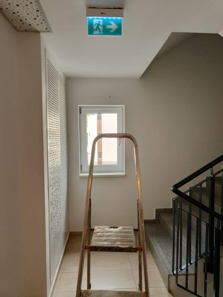 - Au fost reprinse semnele luminoase „EXIT” din parcarea subterană și din blocurile G5 și 7B.